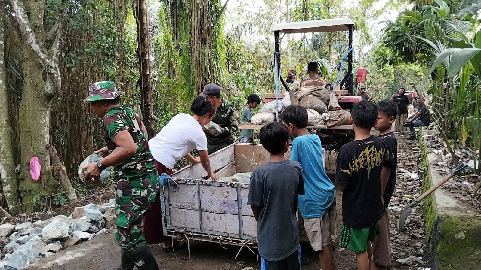 Portalkomando.id | Lombok Barat, Kamis 16 Oktober 2025 – Suasana siang di Dusun Sayang, Desa Giri Madia, Kecamatan Lingsar, Lombok Barat, tampak berbeda. Beberapa anak terlihat antusias menurunkan batu dari traktor modifikasi didampingi orang tuanya. Mereka dengan penuh semangat ikut membantu anggota Satuan Tugas (Satgas) TNI Manunggal Membangun Desa (TMMD) ke-126 Kodim 1606/Mataram yang tengah melakukan pengerjaan penaludan dan membuka akses jalan penghubung di desa mereka, Kamis (16/10/2025).