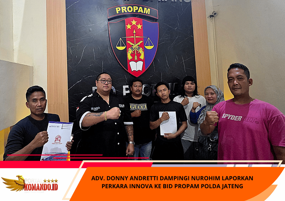 Portalkomando.id |Semarang — Adv. Donny Andretti, S.H., S.Kom., M.Kom., C.Md., C.PFW., C.MDF., C.JKJ., selaku pimpinan Firma Hukum Subur Jaya dan Ketua Umum FERADI WPI, secara resmi mendampingi Nurohim dalam pengajuan laporan ke Bidang Profesi dan Pengamanan (Propam) Polda Jawa Tengah pada Minggu, 15 Februari 2026.