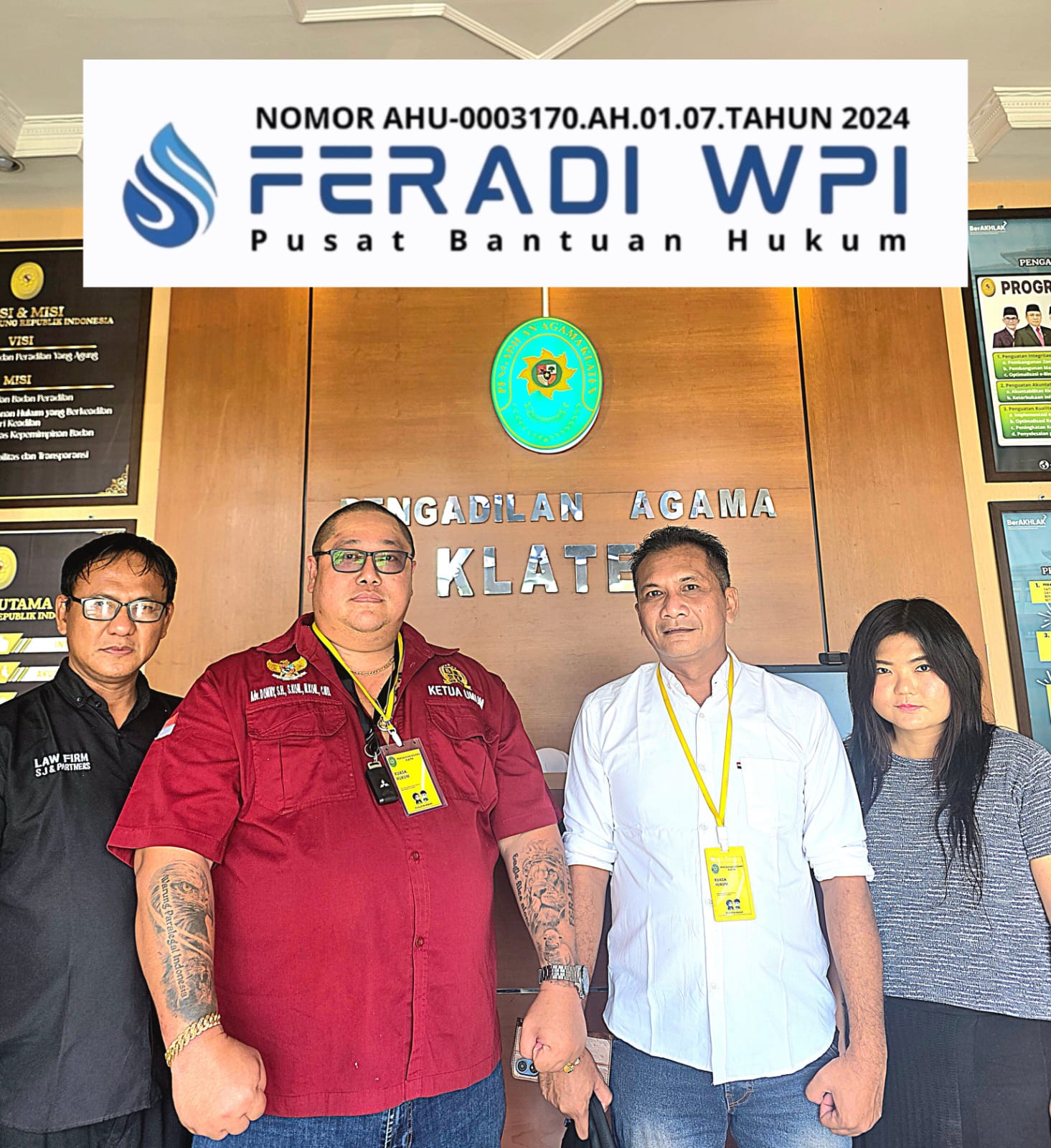Advokat / Pengacara Senior dan Kawakan Bapak Donny Andretti, S.H., S.Kom., M.Kom., C.Md., C.PFW., C.MDF., C.JKJ. didampingi Advokat Magang Cecilia Natasya Tionardi, SE, SH, MH, dan BASRIYANTO, C.PFW,. C.MDF., C.JKJ. KEPALA DIVISI DPP FERADI WPI, dan Waketum III DPP FERADI WPI M. ARIFIN SH MH, sebagai Tim Kuasa Hukum Para Termohon Eksekusi / Aanmaning menghadiri Sidang terakhir Aanmaning di Pengadilan Agama Klaten dengan Nomor Perkara 0009/Pdt.Eks.HT/2025/PA.Klt.