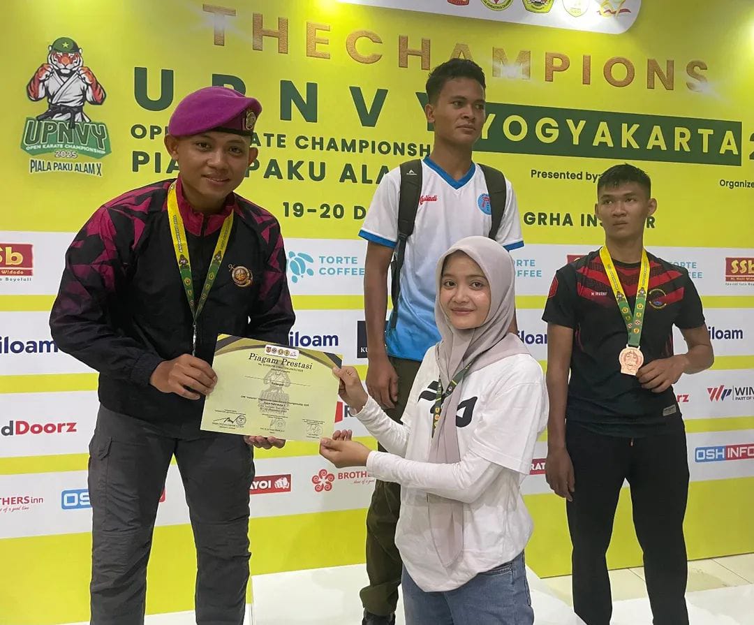 Prajurit Batalyon Arhanud 1 Marinir kembali menorehkan prestasi membanggakan dengan meraih medali perunggu pada ajang Kejuaraan Karate Piala Paku Alam Open National Championship Tahun 2025 yang digelar di GRHA Instiper, Yogyakarta, Minggu (21/12/2025).