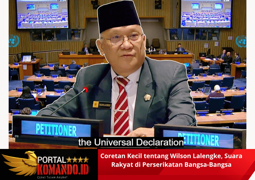 Portalkomando.id | Solok,kamis 30 Oktober 2025 – Dalam momen yang membangkitkan kebanggaan dan semangat di seluruh jajaran Persatuan Pewarta Warga Indonesia (PPWI), Ketua Umum Wilson Lalengke mengukir sejarah dengan berpidato di Markas Besar Perserikatan Bangsa-Bangsa (PBB) pada 8 Oktober 2025. Mewakili bukan pemerintah, melainkan suara masyarakat sipil, wartawan senior dan aktivis Hak Asasi Manusia dari Indonesia itu berdiri tegak sebagai pembicara non-pemerintah yang tidak dibiayai negara Indonesia, namun tetap menarik perhatian para pemimpin dunia.