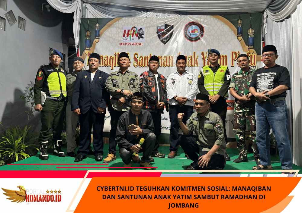 Portalkomando.id | JOMBANG – Menyambut datangnya Bulan Suci Ramadhan, media siber CyberTNI.id kembali menunjukkan komitmennya yang konsisten dalam kegiatan sosial dan keagamaan melalui agenda tahunan Manaqiban dan Santunan Anak Yatim Piatu. Kegiatan ini bukan sekadar tradisi, melainkan wujud nyata kepedulian dan pengabdian CyberTNI.id kepada masyarakat, khususnya di wilayah Jombang dan sekitarnya.