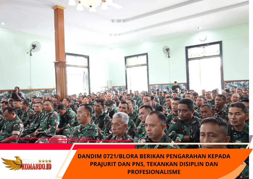 Portalkomando.id | Blora, 30 Januari 2026 – Komandan Kodim 0721/Blora Letkol Inf Agung Cahyono, S.Sos., M.Han., memberikan pengarahan kepada seluruh prajurit dan Pegawai Negeri Sipil (PNS) Kodim 0721/Blora di Aula Makodim 0721/Blora, Jalan Pemuda No. 44 Blora, Jumat (30/1/2026).