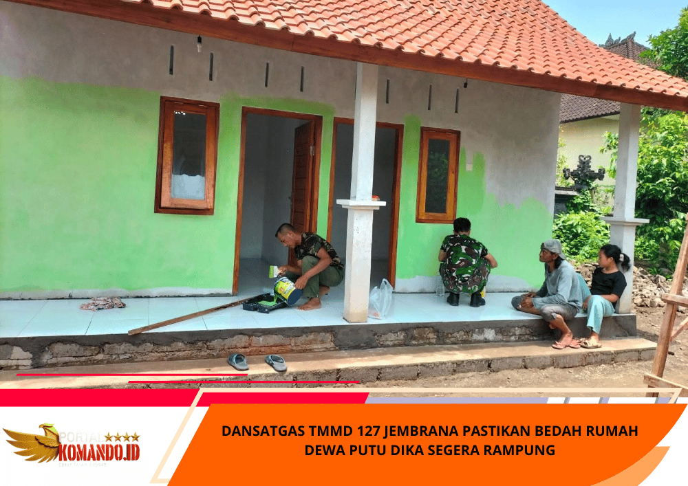 Portalkomando.id| Jembrana – Memasuki hari-hari krusial pelaksanaan TNI Manunggal Membangun Desa (TMMD) Ke-127 Tahun 2026, Komandan Satuan Tugas (Dansatgas) TMMD Kodim 1617/Jembrana Letkol Inf Sy. Gafur Thalib terus memantau secara intensif setiap sasaran fisik yang dikerjakan. Salah satu fokus utama adalah program bedah rumah milik Bapak Dewa Putu Dika di Banjar Yeh Buah, Desa Penyaringan, Kecamatan Mendoyo.