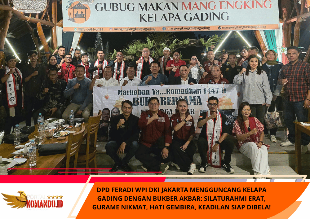 Portalkomando.id | Jakarta – Gempa bumi melanda Kelapa Gading pada 21 Februari 2026! Bukan gempa bumi sungguhan, tapi gempa bumi kebahagiaan dan keakraban yang disebabkan oleh acara buka puasa bersama DPD FERADI WPI DKI Jakarta! Acara yang digelar di Resto Gubug Makan Mang Engking Kelapa Gading ini sukses memukau seluruh jagat raya dan membuktikan bahwa DPD FERADI WPI DKI Jakarta adalah organisasi advokat yang bukan kaleng-kaleng, tapi berlian yang berkilauan!