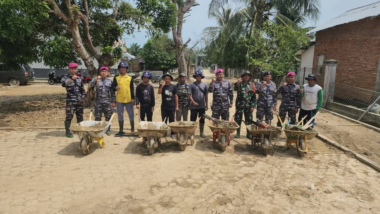 Dispen Kormar TNI AL (Aceh). Pasca banjir bandang yang melanda sejumlah wilayah di Kabupaten Aceh Tamiang, Prajurit Yonmarhanlan l yang tergabung dalam Satgas penanggulangan bencana alam dipimpin Danki Satgas Gulbencal Aceh Tamiang Lettu Mar Taufik Wahyudi bersama warga kampung Pusong Kapal kecamatan Seruway Kabupaten Aceh Tamiang membersihkan saluran air yang tersumbat lumpur akibat bencana Banjir. Selasa ( 06/01/2026).