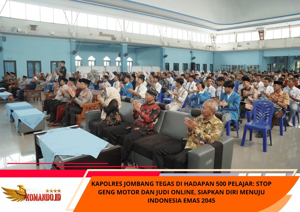 Portalkomando.id | Jombang — Kapolres Jombang AKBP Ardi Kurniawan, S.H., S.I.K., CPHR memberikan peringatan keras kepada 500 pelajar SMA, SMK, dan SLB se-Kabupaten Jombang agar tidak terjerumus dalam kenakalan remaja yang dapat merusak masa depan.
