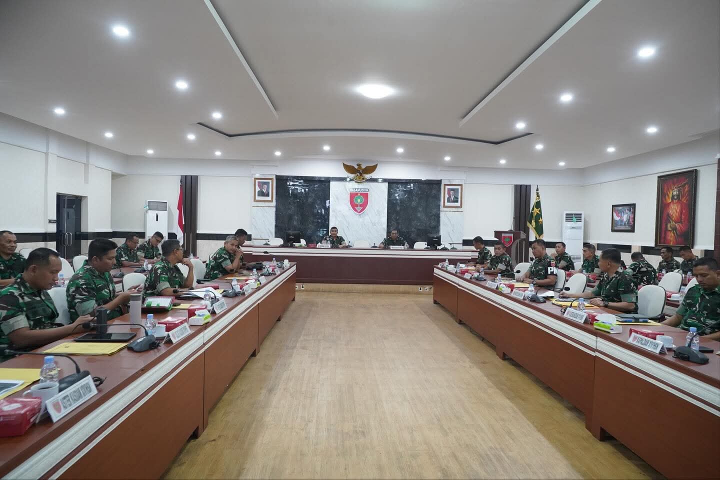 Portalkomando.id | Makassar, Jumat 14 November 2025 – Kasdam XIV/Hasanuddin Brigjen TNI Sugeng Hartono, S.E., M.M., menerima paparan Rencana Garis Besar (RGB) Latihan Posko I dan Latihan Lapangan Korem 143/Haluoleo TA.2025, bertempat di Ruang Bina Yudha (RBY) Makodam, Jl. Urip Sumoharjo, Kota Makassar. Jumat, (14/11/2025).