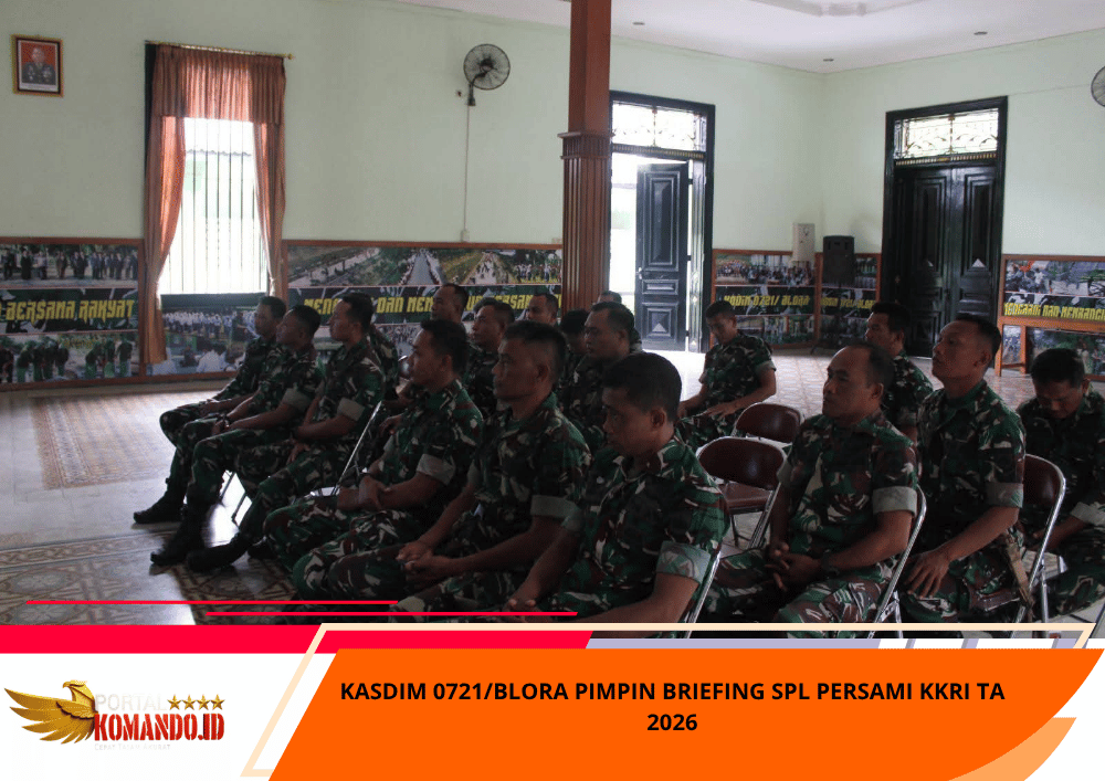Portalkomando.id | Blora, 26 Maret 2026 – Kodim 0721/Blora melaksanakan kegiatan Briefing SPL Persami Korps Kadet Republik Indonesia (KKRI) Kodam IV/Diponegoro Tahun Anggaran 2026. Kegiatan tersebut dipimpin oleh Kepala Staf Kodim (Kasdim) 0721/Blora, Mayor Inf Bani, bertempat di Aula Makodim 0721/Blora, Jl. Pemuda No. 44 Blora.