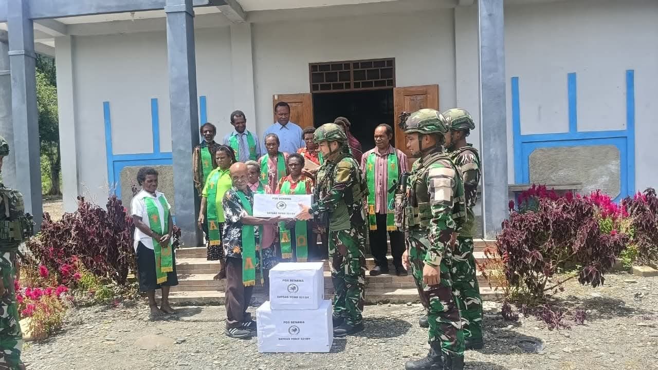 Kegiatan ini dipimpin langsung oleh Dankipur 3 Satgas Yonif 521/DY, Kapten Inf Jerry Octavian Lahindo, S.Tr(Han) bersama personel Pos Benawa. Penyerahan bingkisan dilakukan usai ibadah Minggu, dan diterima secara simbolis oleh Kepala Suku Benawa, disaksikan tokoh masyarakat serta warga yang hadir.
