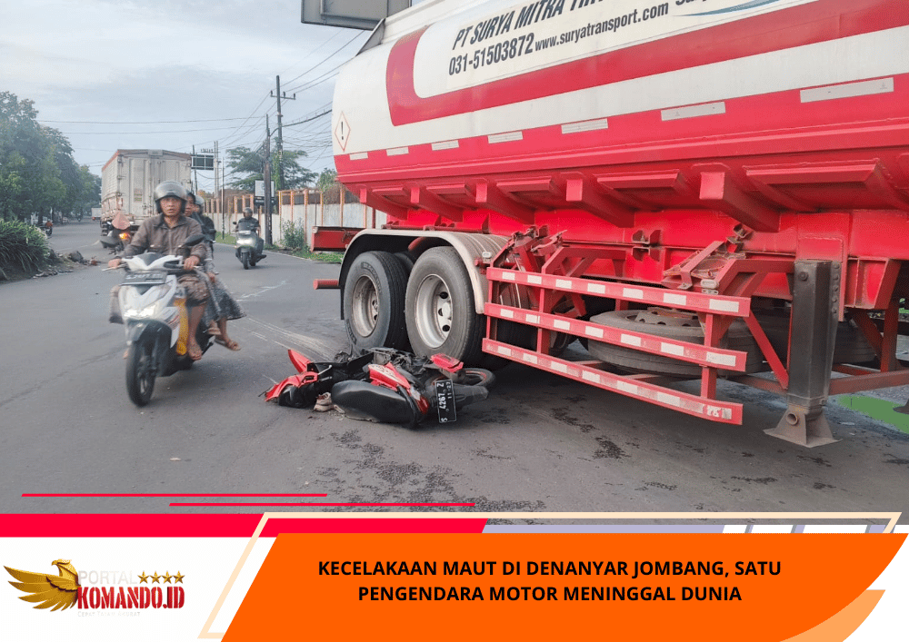 Portalkomando.id| JOMBANG – Kecelakaan lalu lintas yang melibatkan truk tangki dan sepeda motor terjadi di Jalan Raya Desa Denanyar, Kecamatan Jombang, Kabupaten Jombang, Jumat (20/2/2026) sekitar pukul 05.00 WIB.