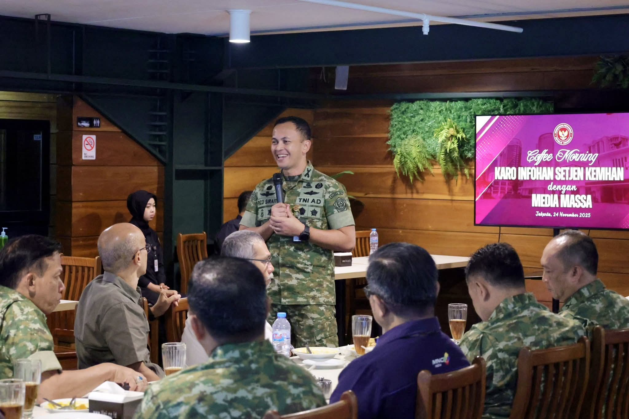 The Head of Defence Information Bureau of Secretariat General of Ministry of Defence, Colonel Arm Rico Ricardo Sirait, hosted a Coffee Morning with national and international media on Monday (24/11) in Jakarta.