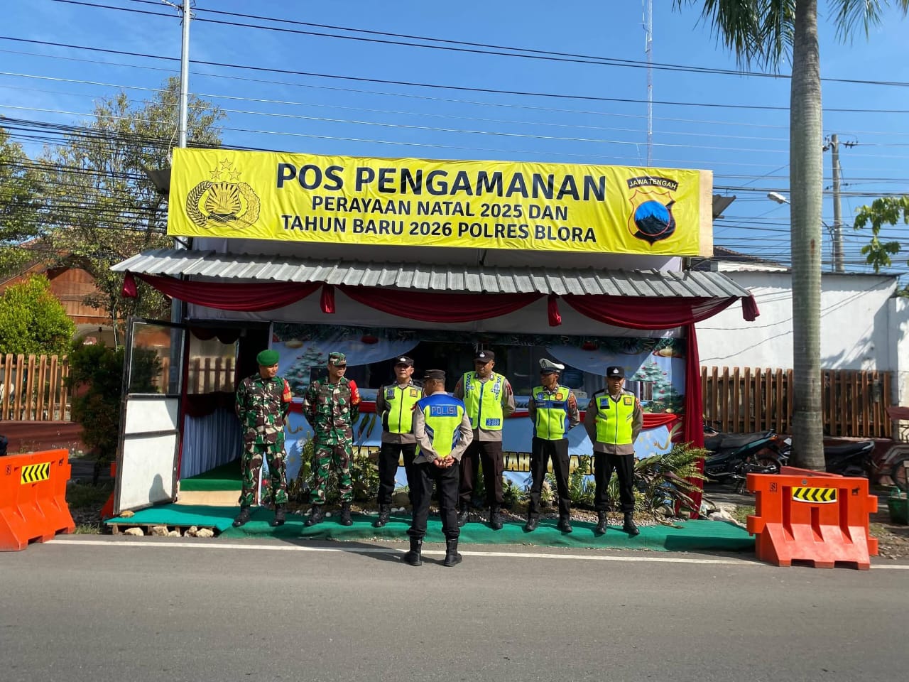 Portalkomando.id| BLORA – Kodim 0721/Blora bersama Polres Blora melaksanakan pengamanan perayaan Natal dan Tahun Baru (Nataru) 2025/2026 di wilayah Kabupaten Blora. Pengamanan dilakukan melalui pendirian Pos Pengamanan (Pos Pam) dan Pos Pelayanan (Pos Yan), Senin (22/12/2025).