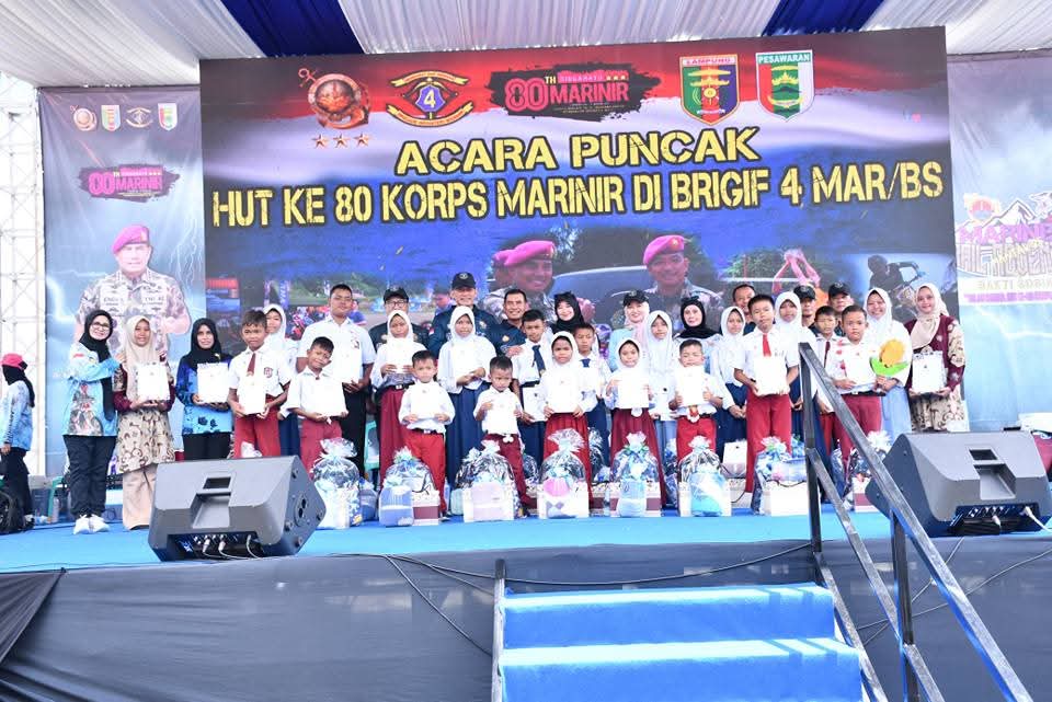 Korps Marinir juga menyalurkan 800 paket sembako dan 200 paket perlengkapan sekolah kepada warga. Senyum masyarakat terlihat ketika menerima bantuan berisi beras, gula, dan minyak goreng. Selain itu, stand pangan murah hasil kerja sama dengan Dinas Ketahanan Pangan dan Hortikultura Provinsi Lampung menyediakan ribuan kilogram beras, gula, minyak goreng, telur, daging ayam, serta aneka bumbu dapur dengan harga terjangkau untuk meringankan beban ekonomi masyarakat.