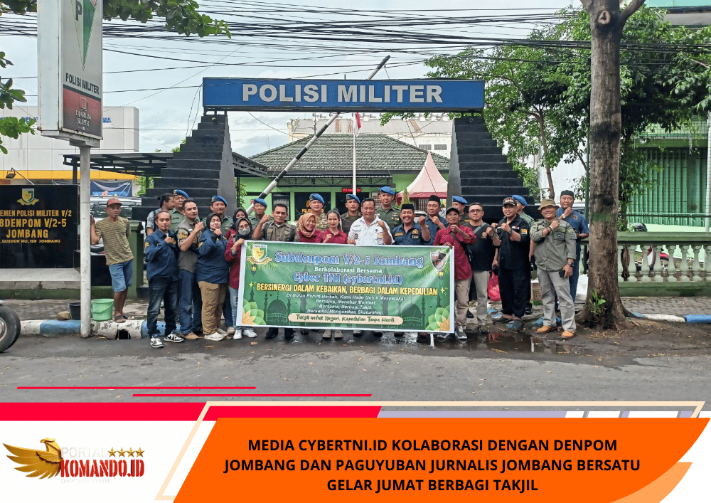 Portalkomando.id | JOMBANG – Semangat kepedulian dan sinergitas antar elemen kembali ditunjukkan oleh Media CyberTNI.id bersama Subdenpom V/2-5 Jombang dan Paguyuban Jurnalis Jombang Bersatu (JJB) melalui kegiatan Jumat Berbagi Takjil, Jumat (27/02/2026).