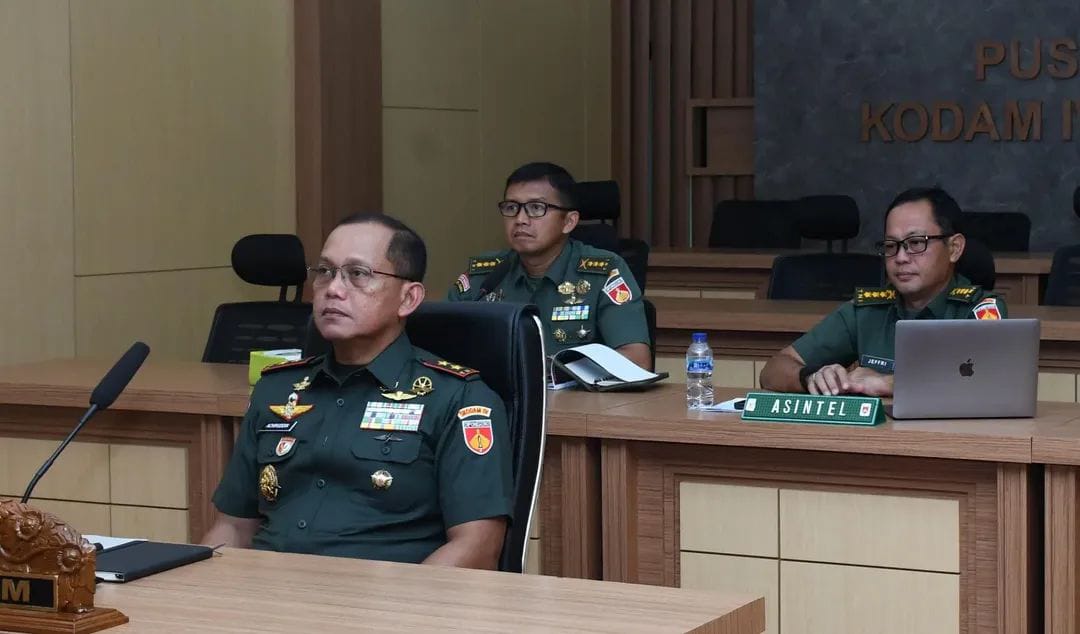 Portalkomando.id | Semarang, Selasa 23 Desember 2025 – Pangdam IV/Diponegoro Mayjen TNI Achiruddin, S.E., M.Han., melaksanakan kegiatan video conference bersama Menteri Koordinator Bidang Politik, Hukum, dan Keamanan Jenderal TNI (Purn) Djamari Chaniago. Kegiatan tersebut dilaksanakan dalam rangka membahas kesiapan dan langkah-langkah pengamanan perayaan Natal dan Tahun Baru (Nataru), serta diikuti oleh para pejabat terkait di lingkungan Kodam IV/Diponegoro. Selasa (23/12/2025).