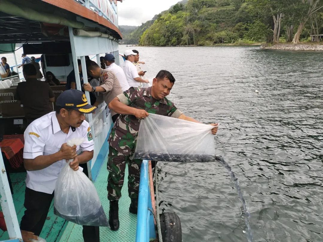 Peduli Kelestarian Danau Toba, TNI–Polri Dan Pemkab Simalungun Tebar Benih Ikan Di Sibaganding