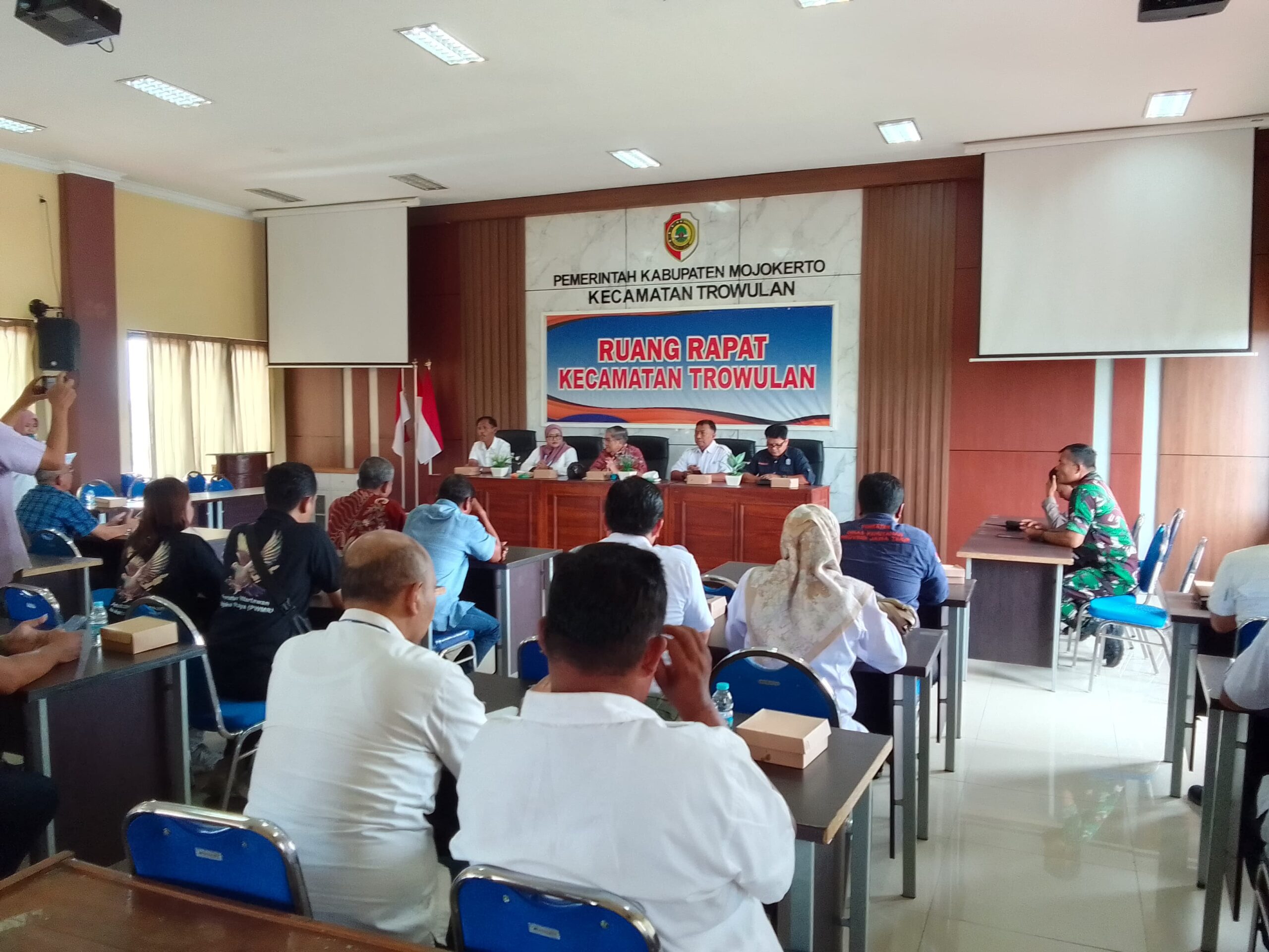 Kepala Camat Trowulan Mujiono, dalam sambutanya menyampaikan terimakasih atas kehadiran semua pihak, untuk mendapat titik terang serta titik temu agar segera eksekusi dan terlaksana pembangunan pihak YSM, agar bisa meningkatkan kesejahteraan masyarakat setempat, terutama lebih diutamakan untuk warga yang terdampak agar ikut dapat bekerja, “Mari kita saling menjalin komunikasi untuk menyamakan persepsi”, agar kegiatan ini segera berjalan, sehingga dapat memberikan manfaat bagi semua pihak dan mensejahterakan masyarakat setempat,” ucapnya Drs Bambang Sulistomo.