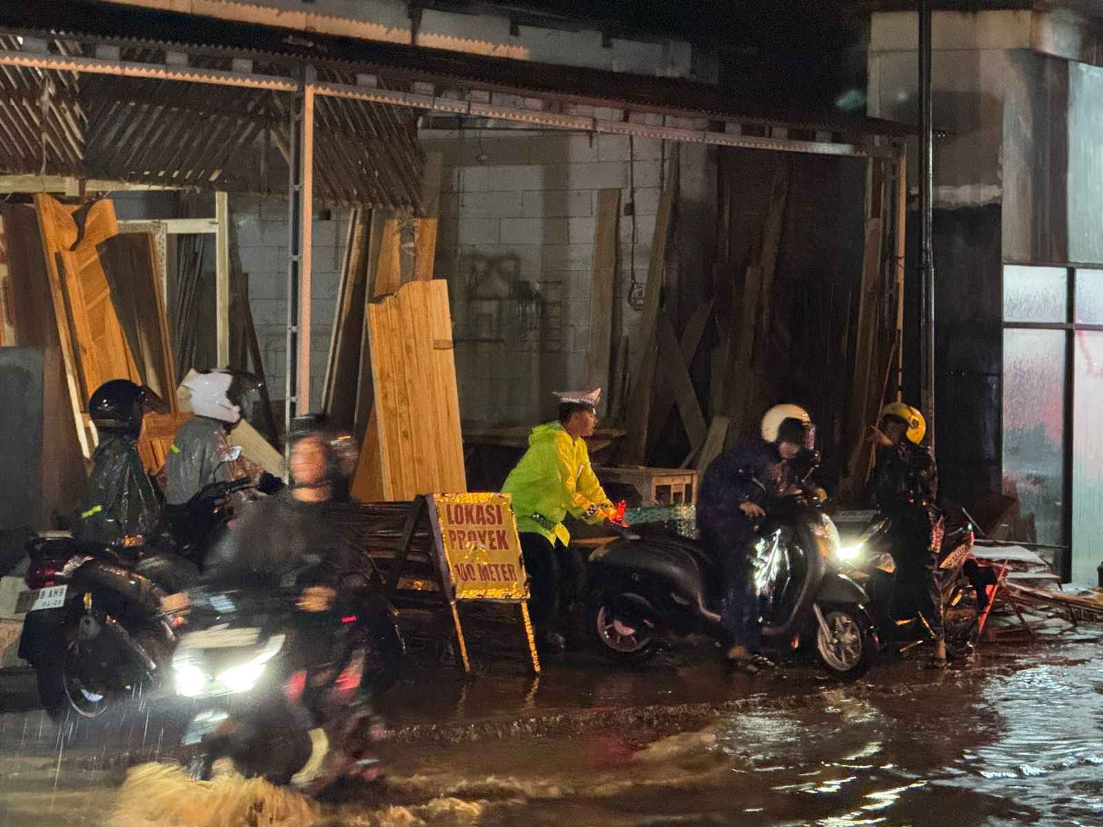 Polri Sigap Atasi Kemacetan Akibat Banjir, Satlantas Polres Jepara Wujudkan Pelayanan Prima Untuk Masyarakat
