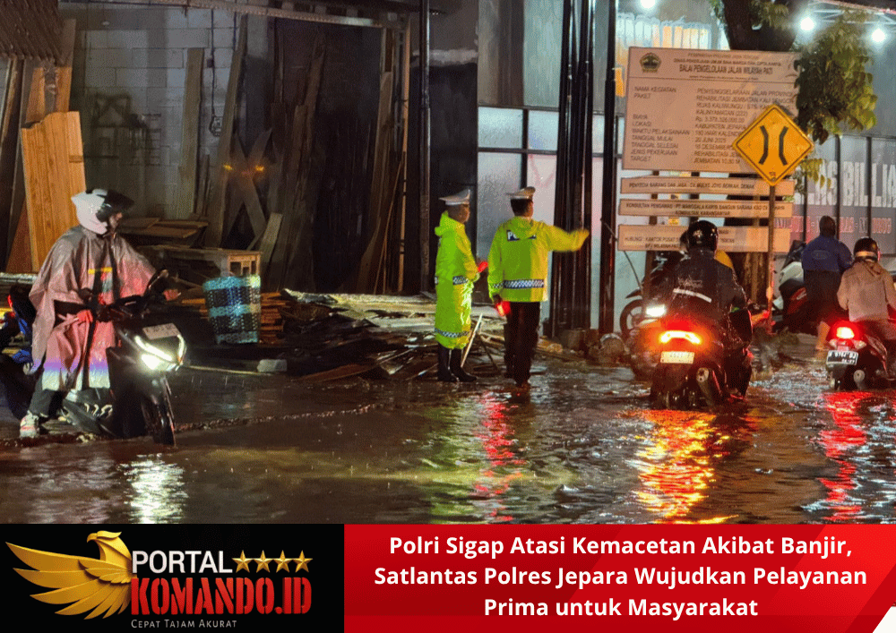 Portalkomando.id | Jepara, Selasa 21 Oktober 2025 – Polres Jepara | Di tengah derasnya hujan yang mengguyur wilayah Kabupaten Jepara, personel Satuan Lalu Lintas (Satlantas) Polres Jepara menunjukkan respons cepat dalam menjaga kelancaran arus lalu lintas.