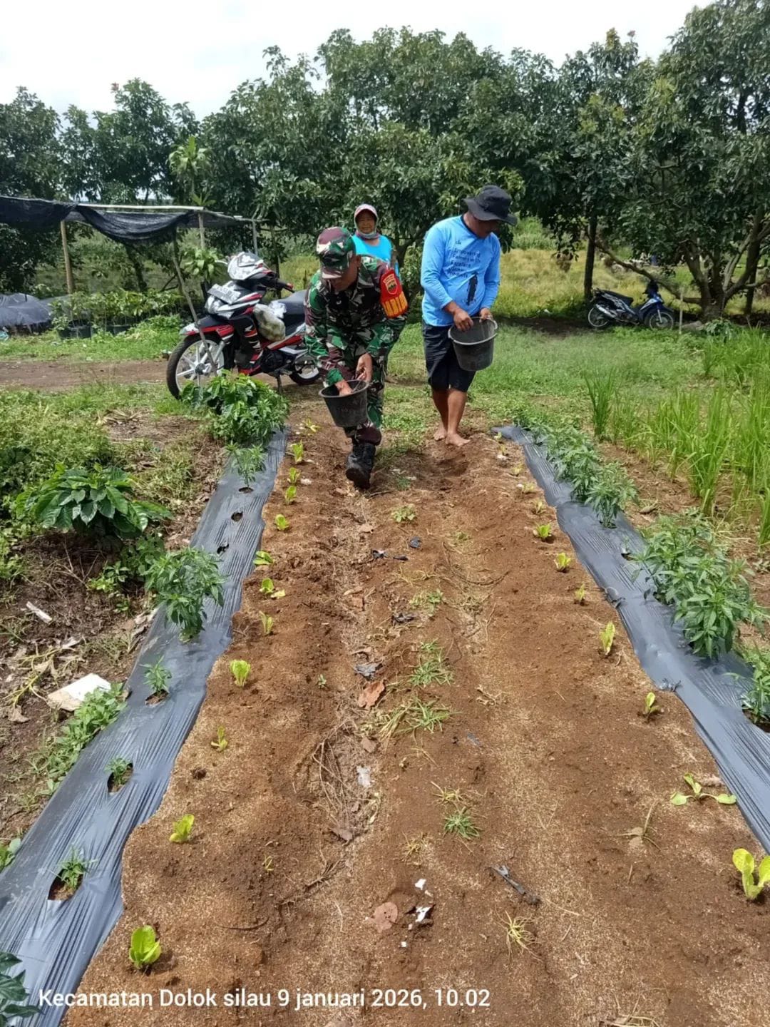 Dalam kegiatan tersebut, Serda P. Samosir turut membantu bapak Marlen Barus melakukan pemupukan tanaman sayur di kebunnya. Kehadiran Babinsa di tengah aktivitas pertanian warga ini tidak hanya memberikan bantuan tenaga, tetapi juga mempererat hubungan kekeluargaan antara TNI dan masyarakat.